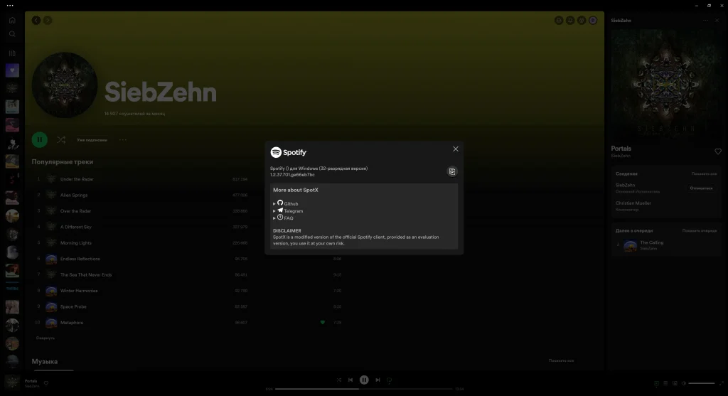 Ниже приведены основные технические характеристики последней версии Spotify, а также информация о сборке и репакере.