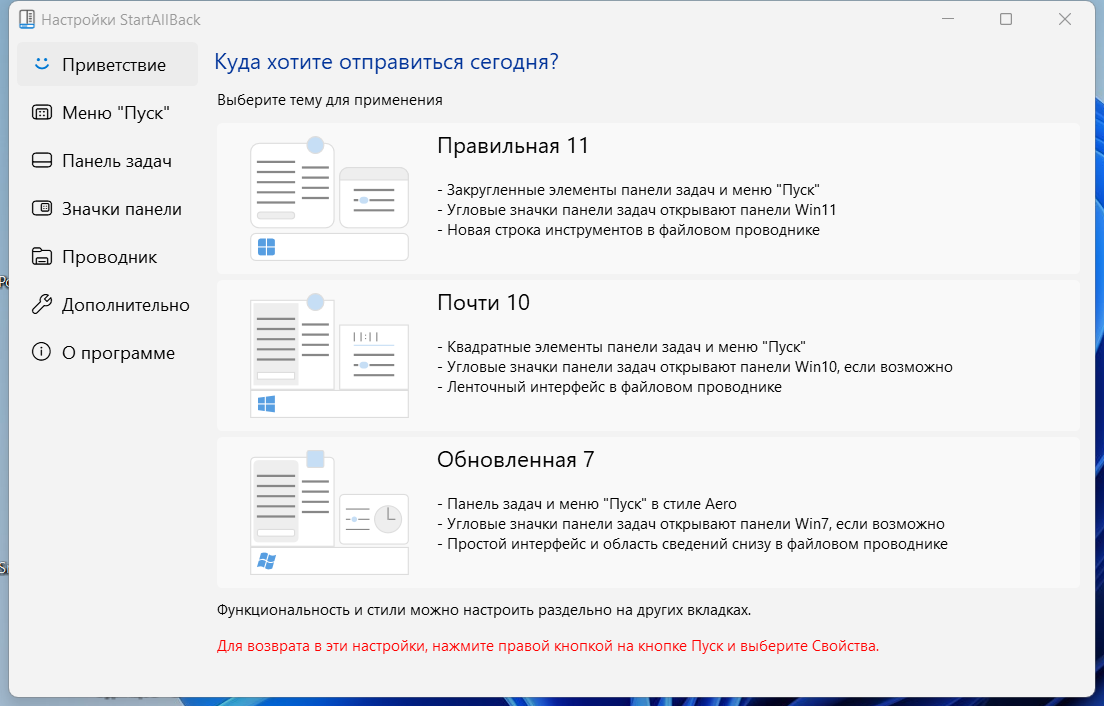 StartAllBack — это программа, предназначенная для восстановления классического интерфейса Windows 7 в новых версиях операционной системы Windows 8.1, 10 и 11. Она позволяет сделать использование системы более привычным и удобным, возвращая привычные элементы интерфейса и обеспечивая комфортную работу.