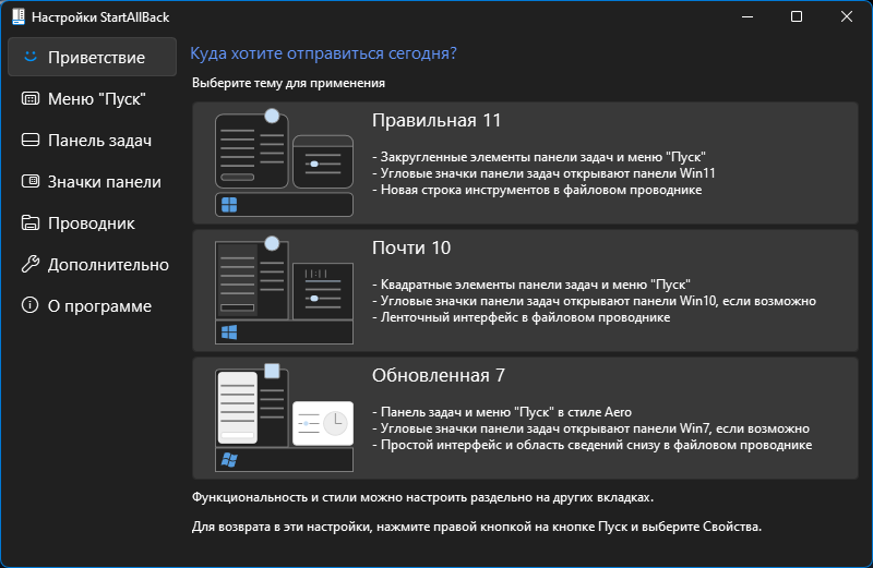 StartAllBack позволяет вернуть привычное меню «Пуск», а также обеспечить более удобную работу с рабочим столом и интерфейсом Windows 11. Программа ориентирована на пользователей, желающих избавиться от нового интерфейса Metro и сделать систему более похожей на предыдущие версии Windows.