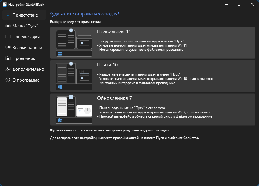 StartAllBack выделяется среди аналогов благодаря ряду уникальных характеристик и удобных настроек: