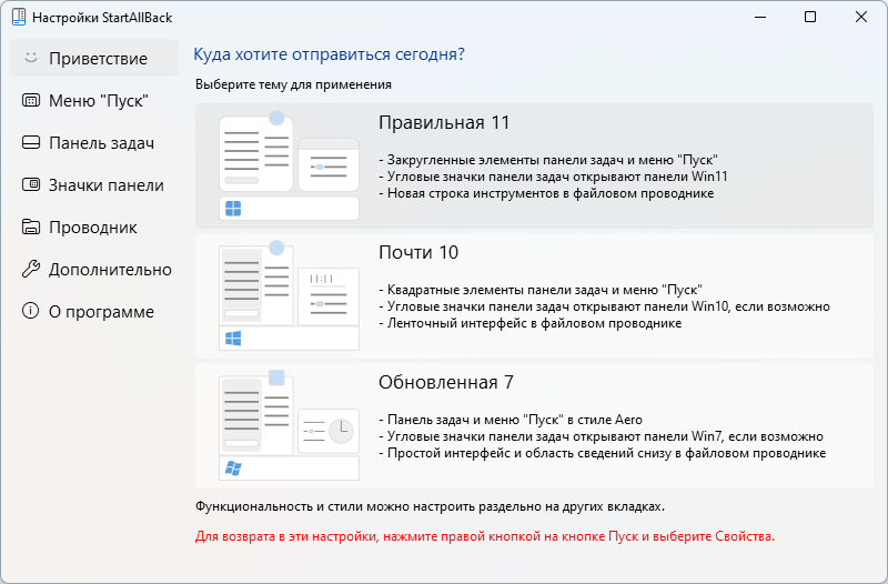 StartAllBack — это программа, предназначенная для восстановления привычного интерфейса Windows 7 в операционных системах Windows 8.1, 10 и 11. Она помогает сделать работу на компьютере более комфортной, возвращая знакомые элементы меню и кнопки.