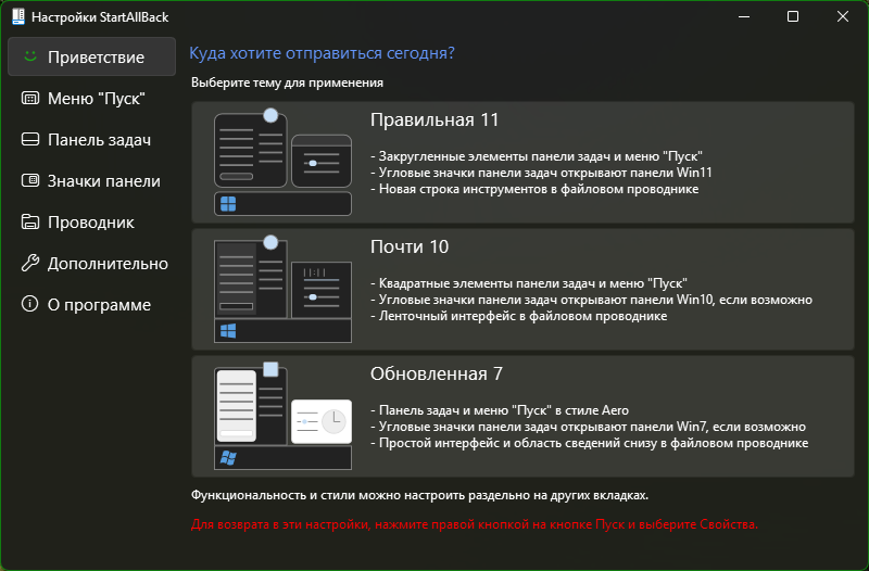 StartAllBack выделяется среди аналогов своей стабильностью, высокой степенью кастомизации и отсутствием необходимости в дополнительных компонентах. Она сохраняет привычную работу интерфейса, избегая мигания и задержек, характерных для других решений.
