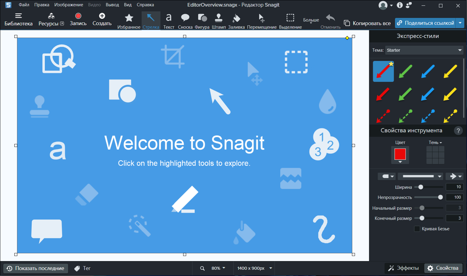 Snagit предлагает широкий набор инструментов для захвата и обработки изображений и видео, что делает её универсальным средством для создания учебных материалов, презентаций, технической документации и других визуальных материалов.