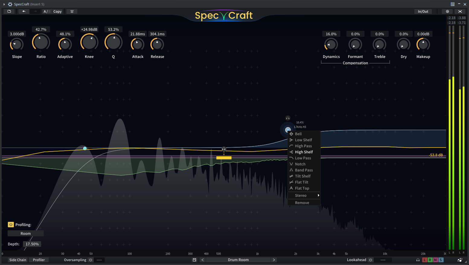 SpecCraft — это многофункциональный инструмент для работы с акустическими резонансами и спектром звука, сочетающий в себе автоматические и ручные режимы настройки, а также расширенные возможности для профессиональной обработки аудио. Благодаря инновационным алгоритмам и удобному интерфейсу, программа позволяет быстро выявлять и устранять резонансные пики, а также восстанавливать динамику и гармонию звука.