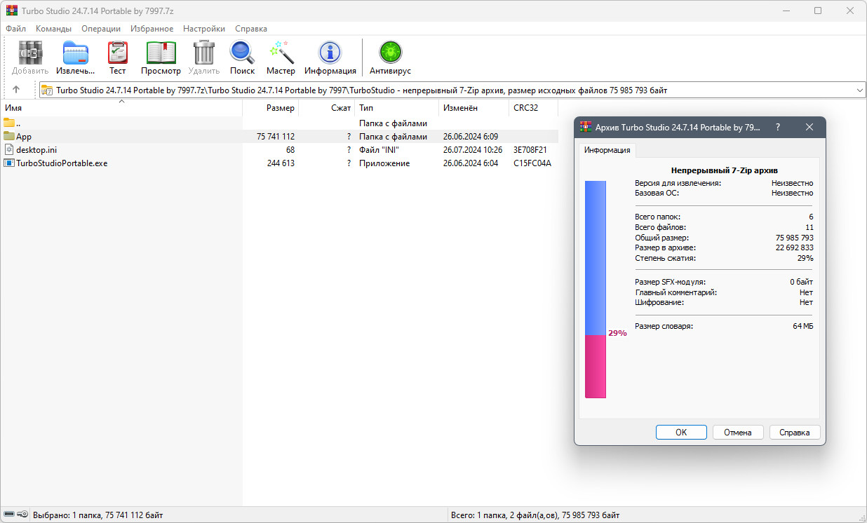 Ниже приведена таблица с основными техническими данными о версии Turbo Studio 24.7.14, доступной в портативном исполнении by-7997.