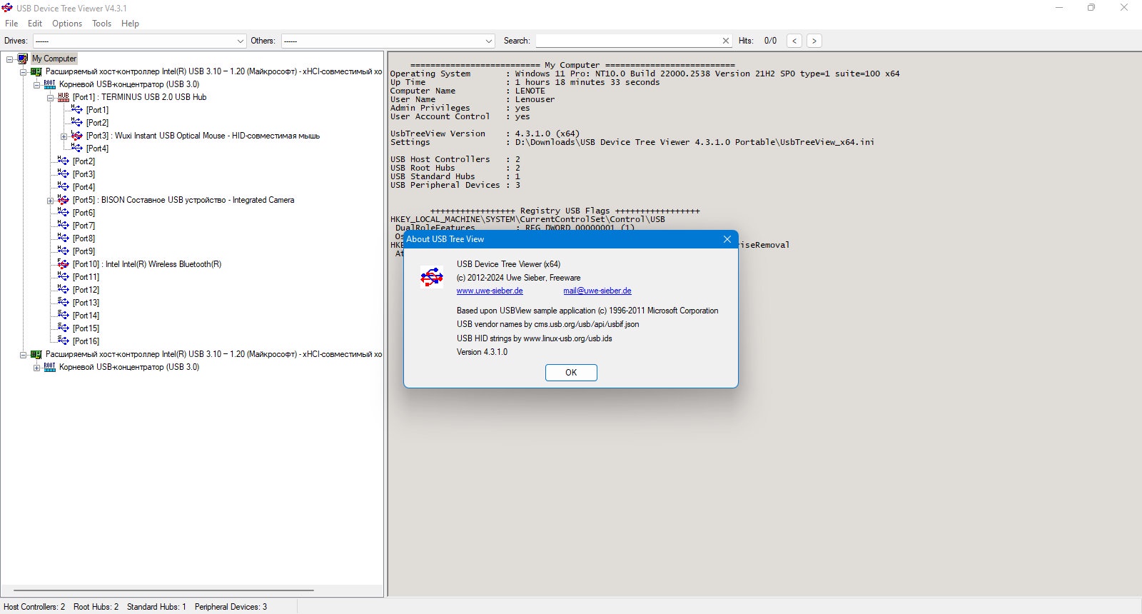 - Отображение и обновление структуры USB-устройств в реальном времени.