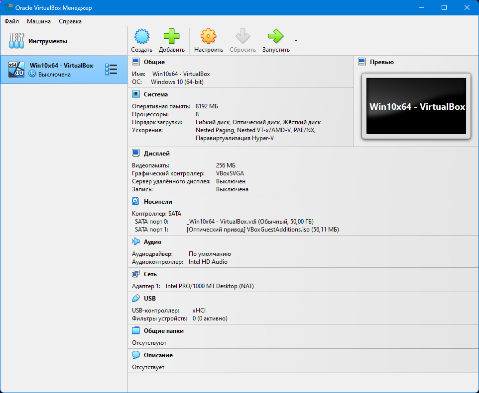 Ниже приведены основные технические характеристики VirtualBox 7.1.0: