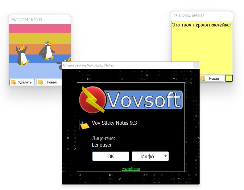 Далее представлена техническая информация о версии Vov Sticky Notes, которая поможет вам лучше понять особенности и возможности программы: