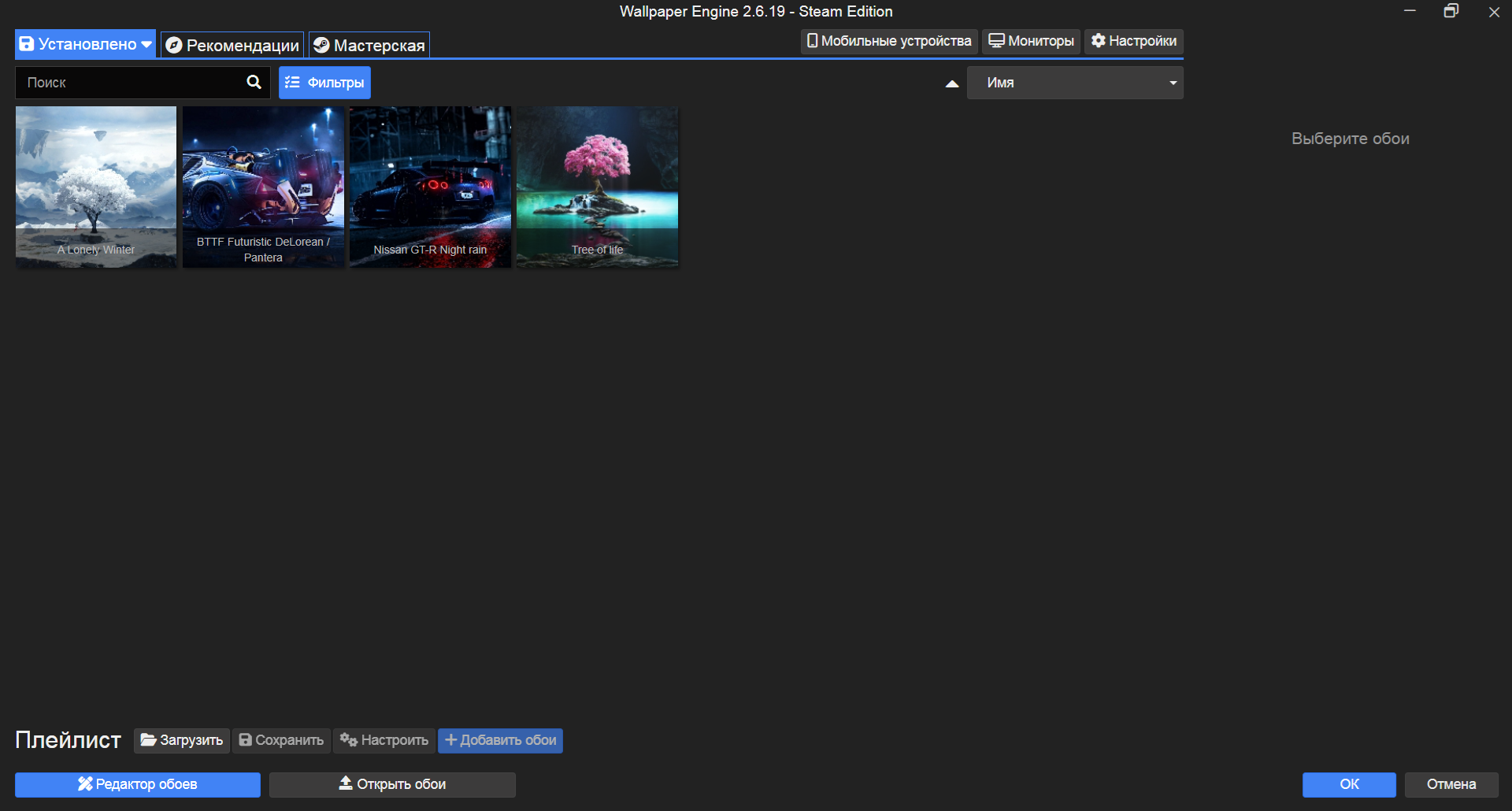 - Глубокая интеграция с Steam Workshop, позволяющая легко находить, редактировать и делиться обоями.
