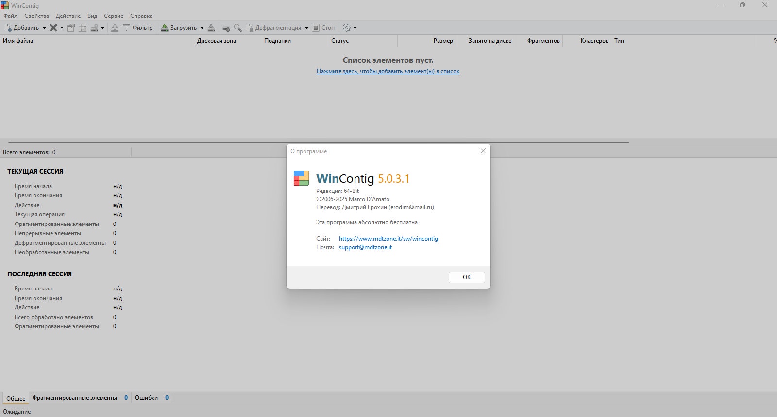 Ниже приведены основные технические характеристики WinContig 5.0.3.1 Portable: