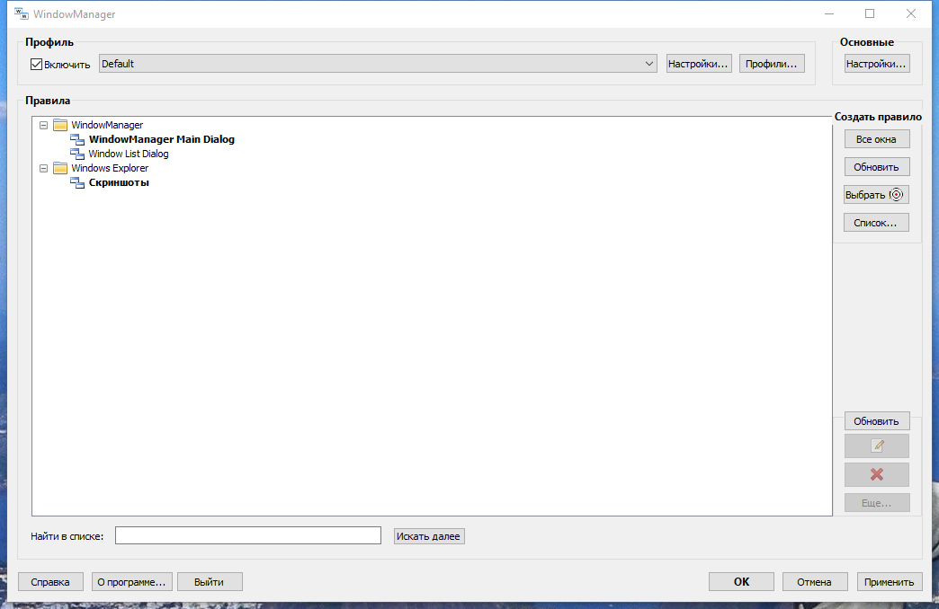 - Настраиваемые правила для автоматического перемещения, изменения размера, активации и закрытия окон
