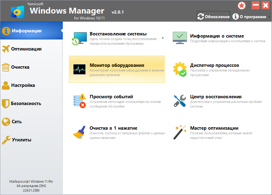 Windows Manager 2.0.1 — это универсальный инструмент для оптимизации, настройки, очистки и ремонта операционной системы Windows 10 и 11. Программа объединяет множество утилит, позволяющих повысить производительность и безопасность системы, а также персонализировать интерфейс под свои предпочтения.