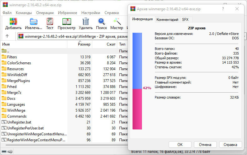 Ниже представлена техническая информация о текущей версии WinMerge: