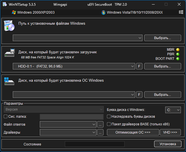 WinNTSetup 5.3.5 Portable — это мощный инструмент для установки и настройки Windows, который позволяет создавать загрузочные модули и устанавливать операционные системы без необходимости использования стандартных установщиков. Программа предназначена для опытных пользователей, желающих гибко управлять процессом установки системы.