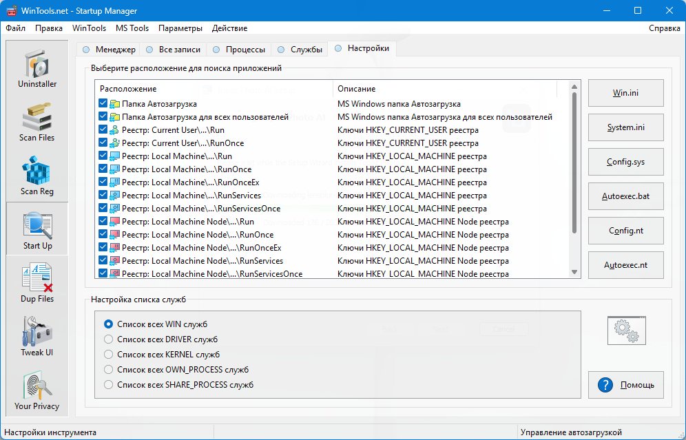 - Возможность контроля за всеми автозагрузками и процессами в системе