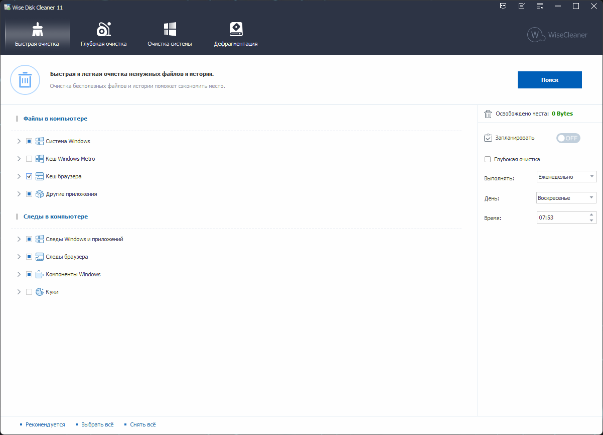 Wise Disk Cleaner обеспечивает эффективную очистку диска за счет поиска и удаления различных видов мусора, а также предлагает дополнительные инструменты для управления файлами. Ее интерфейс интуитивно понятен и позволяет быстро настроить процессы очистки без особых усилий.