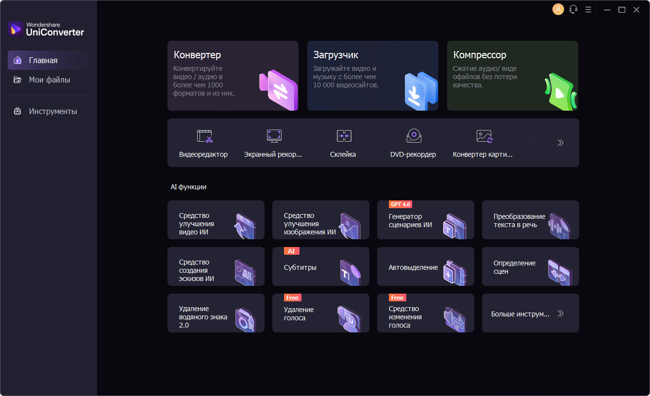 Wondershare UniConverter предлагает широкий набор функций для работы с видео и аудио, объединяя в себе инструменты для конвертации, редактирования, скачивания и передачи мультимедийных файлов. Благодаря простому интерфейсу и высокой скорости работы, она обеспечивает комфортное использование даже для новичков.