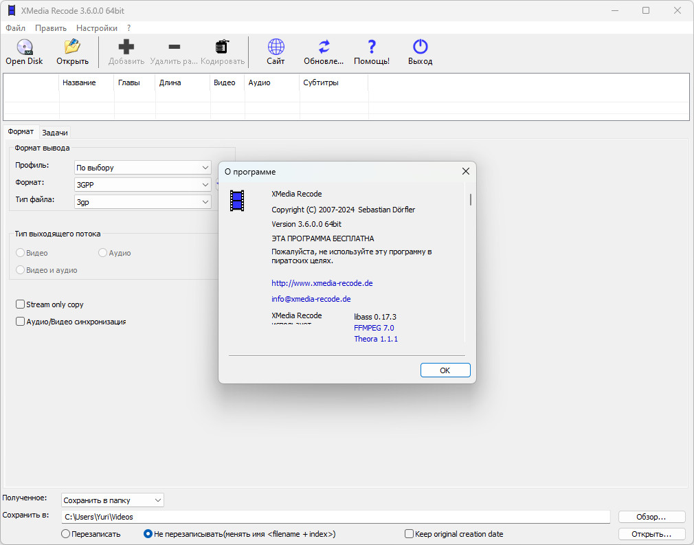 Ниже приведены основные технические характеристики и сведения о версии XMedia Recode, а также информация о репакере, если таковой имеется: