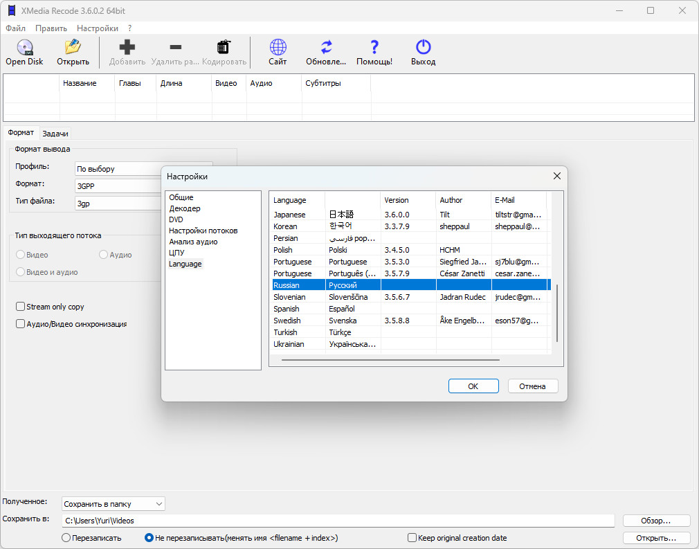 - Многопроходное и быстродействующее кодирование с возможностью выбора качества и настроек.