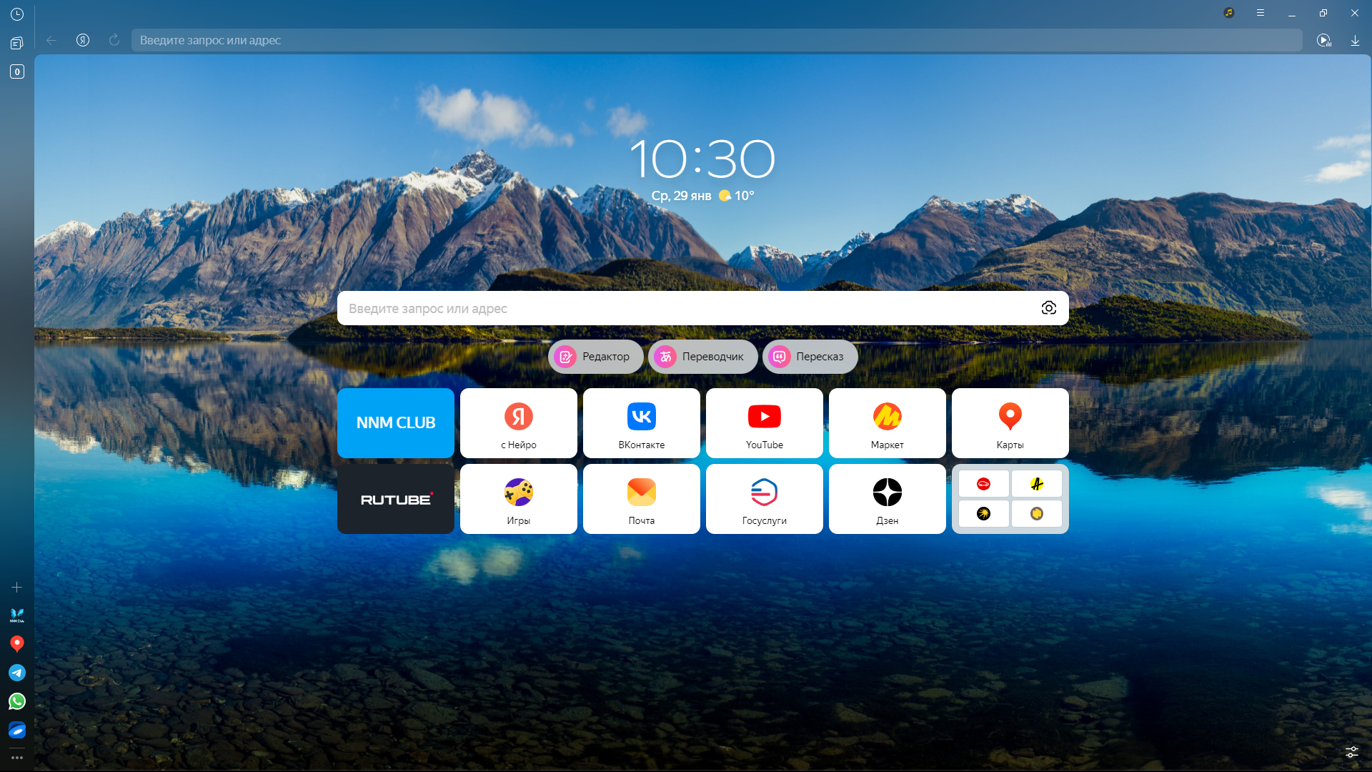 - Функциональный боковая панель для быстрого доступа к Алисе, заметкам, поиску и другим сервисам Яндекса.