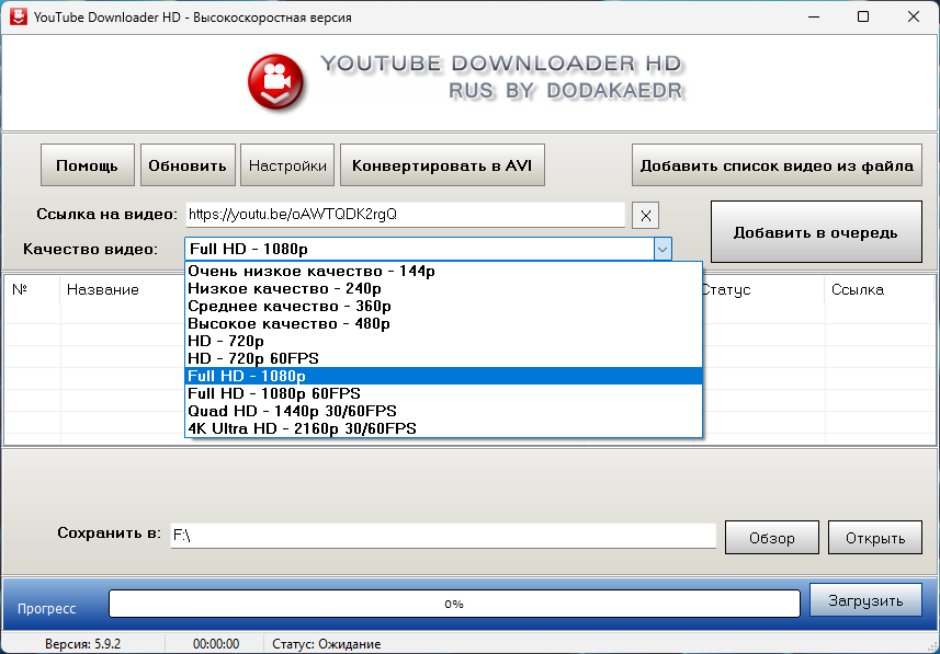 Youtube Downloader HD 5.9.2 — это простая и бесплатная программа для скачивания видео с YouTube с возможностью конвертации в популярные форматы. Она идеально подходит для пользователей, желающих сохранять видео высокого качества в удобных форматах для просмотра на различных устройствах.